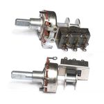 Linear taper potentiometers have an even distribution of resistance through a complete rotation of the shaft. These types of potentiometers are used in devices where the ratio must be proportionate to the position of the shaft rotation or slider position. This, in effect, makes linear taper pots perfect for guitar tone controls as they give the tone a very even sound when making adjustments. We have a large selection of linear pots with 1/4" D-shaft and 6mm knurled shafts as well as slide pots.